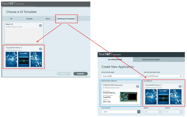 I tu się okazało, że dla tego modułu TouchGFX Designer generuje działające projekty zarówno przykładowe, jak i własne wykonane na podstawie pustego szablonu BLANK UI. Na początek postanowiłem uruchomić program demonstracyjny przygotowany przez twórców TouchGFX. Ponieważ wyświetlacz zamontowany w STM32F429I Discovery ma relatywnie małą rozdzielczość, to okazało się, że dla niego można wybrać tylko szablon BLANK UI i program demonstracyjny TouchGFX Demo3 w wersji V1.1.0 (rysunek 8).