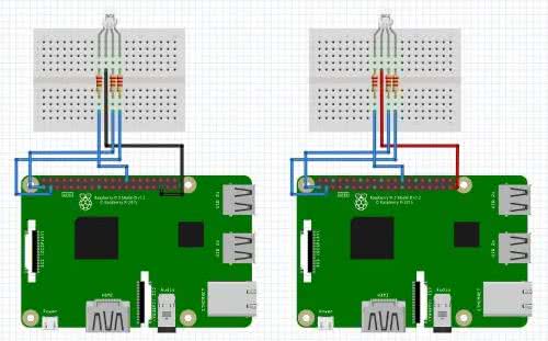 Na rysunku 4 zaprezentowano dwa schematy podłączenia diody RGB do modułu Raspberry Pi, aby sterować nią poprzez sygnały PWM. W zależności od tego, czy zastosowana przez nas dioda ma wspólną katodę (schemat po lewej, katoda do masy – czarny przewód), czy wspólną anodę (schemat po prawej, anoda do zasilania 3,3 V – czerwony przewód), bazujemy na odpowiednim diagramie z rysunku 4. Jeśli chcemy diody zasilać z napięcia 5 V, koniecznie trzeba dodać rezystory na wszystkich kanałach RGB. Oporniki stosowane są do ograniczenia prądu płynącego przez LED-y. Dla typowych elementów wartość ta powinna wynosić 150 V dla kanału czerwonego i po 100 V dla kanałów zielonego i niebieskiego.