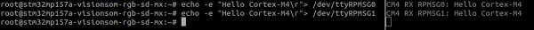 cat /dev/ttyRPMSG0 &echo "Hello Cortex-M4" >/dev/ttyRPMSG0