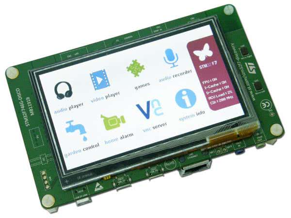- na płytkę STM32F746-Discovery (fotografia 1) z wbudowanym wyświetlaczem,