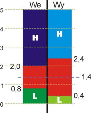 Ważnym parametrem układów cyfrowych są dopuszczalne zakresy napięć dla stanu niskiego i wysokiego w odniesieniu do wejścia i wyjścia. Ze względu na zmiany napięć powodowane różnymi przyczynami konieczne jest zachowanie odpowiednich marginesów rozdzielających stan niski od wysokiego. Dla standardowych układów TTL przyjęto, że dopuszczalne napięcie wejściowe dla stanu niskiego może zawierać się w przedziale od 0 V do 0,8 V, a dla stanu wysokiego od 2 V do 5 V. Analogiczne zakresy dla napięcia wyjściowego: od 0 V do 0,4 V dla stanu niskiego i od 2,4 V do 5 V dla stanu wysokiego (rysunek 7).