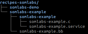 W katalogu recipes-somlabs, w którym domyślnie znajduje się receptura aplikacji demo dodajemy nowy katalog o nazwie somlabs-example. W tym katalogu będą umieszczone wszystkie źródła niezbędne do zbudowania naszej nowej aplikacji.
