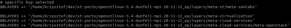 Ostatnim krokiem przed rozpoczęciem kompilacji jest dodanie nowych warstw do pliku build-openstlinuxweston-stm32mp157a-visionsom-rgb-sd-mx/conf/bblayers.conf, tak jak na rysunku 3. Możemy teraz zbudować nowy obraz systemu i przetestować działanie serwera Apache2.
