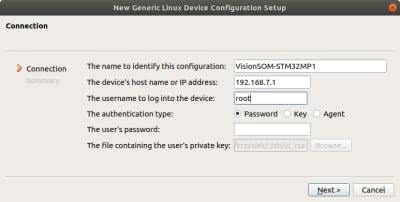 Konfigurację Qt Creatora zaczynamy od dodania urządzenia wybierając menu Tools → Options i przechodząc do Devices. W oknie dialogowym klikamy Add i wybieramy Generic Linux Device (rysunek 1). Po uruchomieniu kreatora przyciskiem Start Wizard musimy uzupełnić dane urządzenia – nazwę oraz adres IP, dzięki któremu Qt Creator będzie mógł się z nim połączyć (rysunek 2).