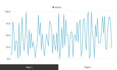 Druga strona aplikacji została pokazana na listingu 3. W pliku Page2Form.ui.qml importujemy moduł QtCharts i dodajemy strukturę ChartView, w której definiujemy wykres liniowy zawierający sto punktów. W strukturze LineSeries dodajemy dwie osie danych. Oś Y będzie zawierała losowo generowane wartości od 0 do 100, natomiast na osi X, której wartości są ukryte będziemy dodawać kolejne numery punktów. Początkowa minimalna wartość na osi X jest ustawiona na –100, dzięki czemu punkty na wykresie będą pojawiały się od prawej strony okna. Na tej stronie również dodajemy aliasy właściwości, do których będziemy odwoływać się w pliku main.qml.