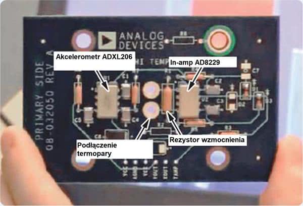 Jako przykład zastosowania odpowiednich urządzeń półprzewodnikowych w systemach wysokotemperaturowych, w dalszej części pokazany jest system pomiarowy zawierający opisywany AD8229 oraz ADXL206 (akcelerometr dwuosiowy), dostosowany do działania w środowisku o wysokiej temperaturze. Założeniem było zaprojektowanie systemu, który byłby zarówno przenośny, jak i bezpieczny w użyciu w tym środowisku.