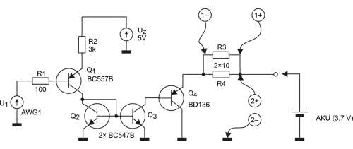 Skoro jednak dysponujemy tak uniwersalnym narzędziem, to nasuwa się pytanie, po co konstruować jeszcze jakiś dodatkowy adapter? Odpowiedź jest prosta. Generator arbitralny ma zbyt małą obciążalność w stosunku do naszych potrzeb. Nie można przecież wykluczyć, że będziemy badać rozładowywanie akumulatora prądem rzędu nawet setek miliamperów.