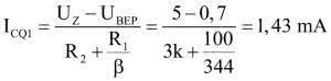 Wydajność źródła prądowego (ICQ1) zbudowanego na tranzystorze Q1 jest równa: