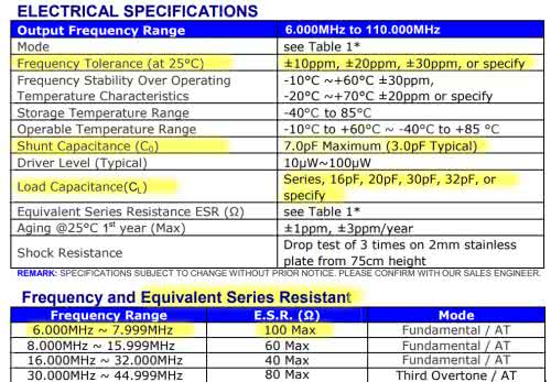 - Equiv. Series Inductance – indukcyjność zastępcza definiująca wraz z pojemnością capacitance podstawową częstotliwość drgań rezonatora,