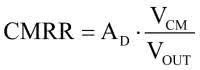 gdzie AD to wzmocnienie różnicowe, VCM to napięcie współbieżne na wejściu wzmacniacza, a VOUT to napięcie, jakie pojawia się dla tego napięcia współbieżnego na wyjściu układu. Im wyższe CMRR, tym mniej sygnału współbieżnego „przenika” z wejścia na wyjście wzmacniacza. CMRR nie jest stały w funkcji częstotliwości i należy pamiętać o tym, że jeżeli w systemie pracujemy z sygnałami zmiennymi, to należy również zapoznać się z wykresem CMRR w funkcji częstotliwości.