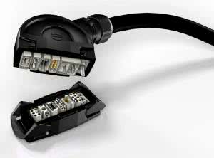 Dostępne obecnie portfolio modułów połączeniowych jest doprawdy imponujące i obejmuje zarówno potężne styki o ratingu 200 A/1000 V, mocowania dla kabli typu patchcord oraz FireWire, złącza USB, okrągłe złącza typu Quintax oraz koncentryczne o częstotliwości do 500 MHz i impedancji 50 lub 75 Ω, jak również konwencjonalne wkładki D-Sub, moduły wysokonapięciowe o izolacji do 5000 V i – oczywiście – wielostykowe moduły sygnałowe o nawet 42 pinach. Co ciekawe, nie zabrakło także „inteligentnych” modułów ID CAN, zapewniających wbudowaną pamięć o pojemności aż 10 MB i przepustowości szyny CAN na poziomie 1 Mbit/s. Dostępne są ponadto wielotorowe złącza pneumatyczne o wytrzymałości do 10 bar. Dwa przykłady złączy Han-Modular o diametralnie różnych konfiguracjach zostały pokazane na fotografiach 10 i 11.