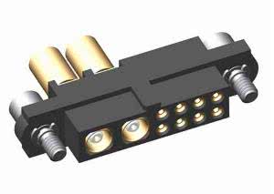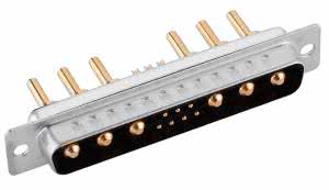 Niektórzy producenci wykonują złącza Micro-D w wersji hybrydowej, np. z dodatkowymi sekcjami koncentrycznymi lub grubymi pinami zasilania (fotografia 18).