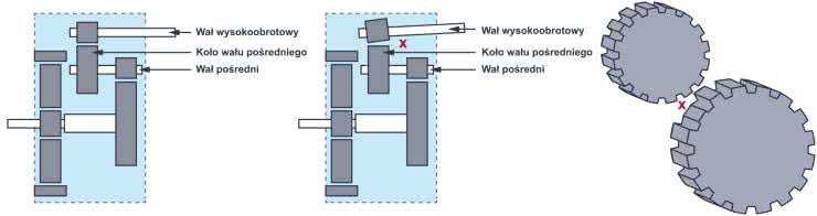 Awaria łożysk jest zdecydowanie najczęstszym czynnikiem przyczyniającym się do awarii przekładni. Niektóre badania wskazują na katastrofalne awarie kół zębatych, których główną przyczyną jest uszkodzenie łożyska. Gdy tylne łożysko w wale wysokiej prędkości ulegnie awarii, wał ten przechyla się, powodując nierówny nacisk na koło zębate wału pośredniego (środkowego). W tym scenariuszu stykające się zęby są podatne na uszkodzenia, jak pokazano na rysunku 3.