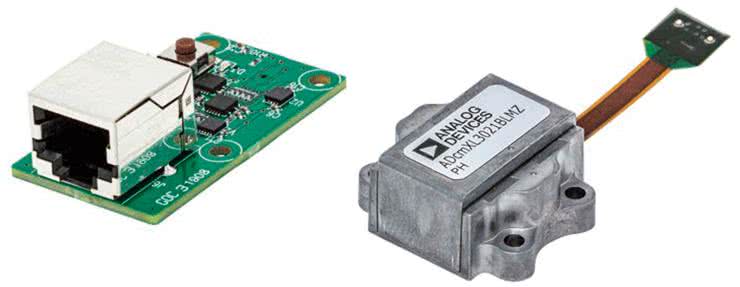 Na rynku dostępne są kompletne zestawy zweryfikowanych projektów referencyjnych, systemów oceny oraz modułów czujników stanu maszyny typu „plug and play”, które przyspieszają prace projektowe. Fotografia 1 pokazuje platformę oceny bezprzewodowego monitorowania drgań firmy Analog Devices. To rozwiązanie systemowe łączy w sobie elementy mechaniczne, sprzęt, oprogramowanie sprzętowe i oprogramowanie komputerowe, które pozwala na szybkie wdrożenie i ocenę jednoosiowego rozwiązania do monitorowania drgań. Moduł można przymocować bezpośrednio np. do silnika lub uchwytu magnetycznie lub za pomocą innego systemu montażu. Można go również łączyć z innymi modułami w tej samej bezprzewodowej sieci kratowej, aby zapewnić szerszy obraz z wieloma węzłami czujników w ramach systemu monitorowania opartego na stanie.