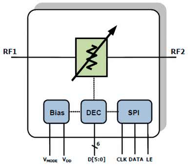 Tłumiki VVA zapewniają ciągłą regulację poziomów tłumienia, które można ustawić na dowolną wartość z zakresu możliwego do osiągnięcia danym elementem. Tłumiki sterowane analogowo są zwykle stosowane w obwodach automatycznej regulacji wzmocnienia, systemach korekcji i kalibracji oraz w innych funkcjach przetwarzania, w których wymagana jest płynna i precyzyjna kontrola sygnału. Strukturę takiego komponentu pokazuje rysunek 1.