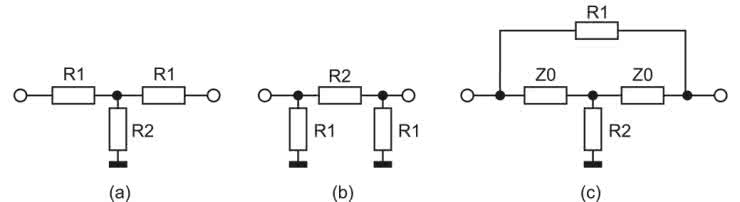 Zintegrowane tłumiki mogą być realizowane w różnych technologiach, różniących się materiałem układu bądź zastosowanym procesem. Używa się, tak jak w innych układach radiowych, materiałów takich jak GaAs, GaN, SiC lub klasycznego procesu CMOS przy użyciu rezystorów, diod PIN, tranzystorów FET, HEMT i CMOS. Na rysunku 3 pokazano trzy podstawowe topologie, które stosuje się do konstrukcji różnych typów i konfiguracji tłumików: sieci typu T, typu π i sieci typu zmostkowane-T.