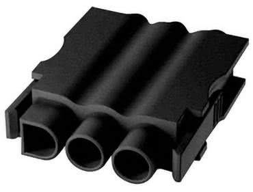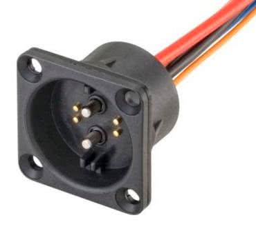 Podobne rozwiązania konstrukcyjne w zakresie koordynacji izolacji korpusów złączy są stosowane również przez innych producentów. Dobrym przykładem mogą być tutaj produkty z serii ST x1/BU x1, gdzie x oznacza liczbę pinów (5, 7 lub 9). Elementy te, dostarczane przez niemiecką markę SPS Electronic, mają napięcie nominalne 10 kVDC/7 kVAC, mogą przewodzić prąd o natężeniu do 30 A(AC) i bazują na teflonowych izolatorach. Wtyki męskie są przeznaczone do zarabiania na kablu, natomiast gniazda mają kołnierze z czterema otworami montażowymi (fotografia 4).