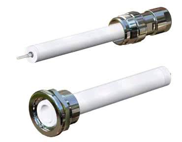 Szczególnie interesującą ofertę w zakresie złączy HV opracowała niemiecka firma hivolt.de. Najnowsza seria ultrawysokonapięciowych komponentów, oznaczona numerem HC7, obejmuje modele o napięciu znamionowym od 10 kVDC do nawet 100 kVDC (!) – należy tutaj podkreślić, że mówimy o maksymalnym dopuszczalnym napięciu pracy, gdyż wszystkie produkty przeszły testy przy napięciu o 50% wyższym. W konstrukcji złączy uwagę zwracają silnie wysunięte izolatory teflonowe (fotografia 1), efektywnie zwiększające zarówno odstępy powierzchniowe, jak i powietrzne pomiędzy metalowym korpusem a środkowym przewodnikiem. Wtyki HC7 współpracują ze specjalistycznymi kablami HV o średnicy około 11...12 mm, również znajdującymi się w ofercie niemieckiego producenta.