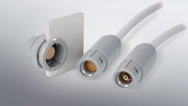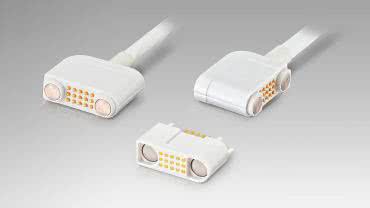 Szeroką ofertę złączy dopuszczonych do użytku w obszarze silnego pola magnetycznego MRI opracowała wspomniana już wcześniej wielokrotnie firma ODU. Oferowane przez markę złącza hybrydowe ODU-MAC (fotografia 27), oprócz sekcji koncentrycznych oraz różnicowych, przeznaczonych do szybkiej transmisji danych, mogą być wyposażone także w grube piny zasilania oraz zwykłe styki sygnałowe. Ponadto firma oferuje produkty do innych zastosowań w aparaturze MRI, w tym do wiązek kablowych umożliwiających dokowanie przesuwnego stołu pacjenta do głównego segmentu tomografu.