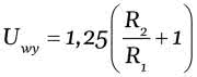 Napięcie wyjściowe jest obliczane ze wzoru:
