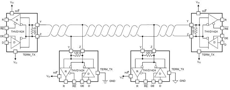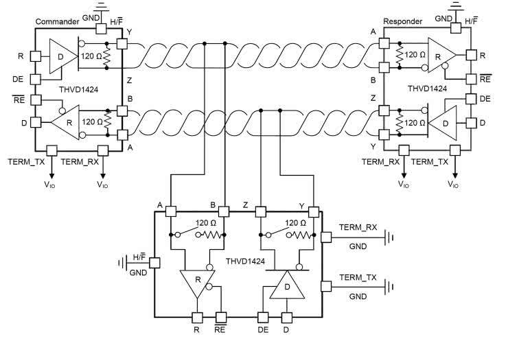 Opisany w dalszej części artykułu układ THVD1424 zapewnia projektantom systemów elastyczność korzystania z tego samego urządzenia w dowolnej lokalizacji węzła (węzeł końcowy i węzeł środkowy), w dowolnej sieci – dwuprzewodowej (half-duplex) lub czteroprzewodowej (full-duplex) i o dowolnej prędkości transmisji. Podejście, jakie zapewnia ten transceiver, pozwala na uproszczenie projektu urządzeń – można zaprojektować tylko jedną PCB dla różnych urządzeń i skonfigurować działanie interfejsu za pomocą oprogramowania do różnych potrzeb i aplikacji, oszczędzając w ten sposób czas i wysiłek związany z projektowaniem, przyspieszając moment wprowadzenia nowego urządzenia na rynek.