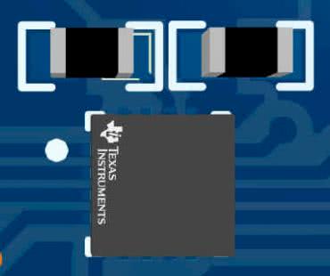 THVD1424 potrzebuje tylko dwóch kondensatorów filtrujących zasilanie o pojemności 1 μF na pinach zasilających VCC i VIO, aby poprawnie działać, zapewniając w ten sposób niezwykle kompaktową konstrukcję. Wszystkie piny logiczne, które mogą być podłączone na stałe do zasilania lub masy, znajdują się po bokach obudowy. Wszystkie cztery styki magistrali znajdują się po jednej stronie obudowy, aby umożliwić ergonomiczny projekt płytki drukowanej. Wizualizacja projektu płytki (fragment z omawianym układem) z kondensatorami filtrującymi został pokazany na rysunku 10.