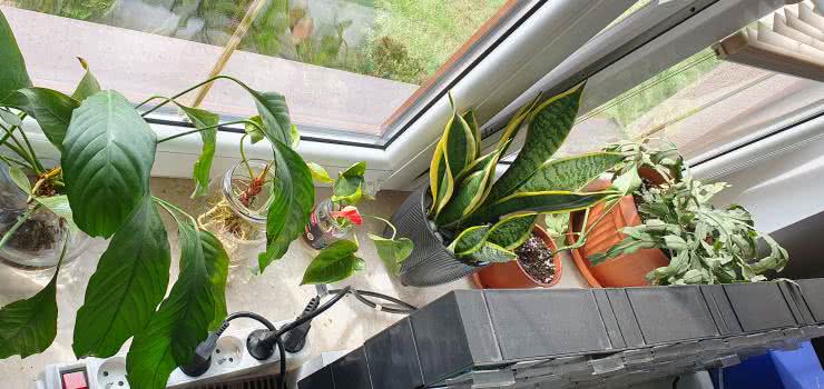 Po drugie: kiedy kwestię ubrań już załatwimy, pora przyjrzeć się powietrzu. O tym, jakie powinny być jego parametry, wiadomo od dawna. Warto jednak wiedzieć, że zalecany przedział wilgotności względnej powietrza to 40...60%. Tymczasem, jak wynika z moich doświadczeń jako elektronika i alergika w jednym, okolice 60% są korzystniejsze. Przy tej wartości zdecydowanie rzadziej dochodzi u mnie do przesuszenia zatok i nadwrażliwości gałek ocznych, szczególnie w okresie pylenia wszystkiego, czytaj: wiosną. Choć miewam z tym zjawiskiem problem i zimą (czego powodem z reguły jest smog), i latem oraz jesienią (kurz). Co więcej: wilgotne powietrze łatwiej rozprowadza naładowane statycznie cząstki, zapobiegając ich osiadaniu w jednym miejscu. Inaczej mówiąc, wszystkie przedmioty same się rozładowują, skoro istnieje między nimi upływność. O to, by wilgotność była prawidłowa, najlepiej dbają zwykłe kwiaty na parapecie. My zaś, jako ludzie, dbamy o wilgotność podłoża, na którym rosną – i gotowe. U mnie stoi rządek widoczny na fotografii 1 – jako że jest to jedyne okno od strony południowej w domu, żona prowadzi na nim rozmaite eksperymenty z ukorzenianiem i ratowaniem usychających roślinek, których w całym domu jest kilkadziesiąt. Rośliny są o tyle dobrym nawilżaczem powietrza, że oddają wilgoć, kiedy jest ono suche oraz pochłaniają, kiedy wody w powietrzu jest za dużo – to niemal doskonała samoregulacja. Przy okazji zielone akcenty cieszą zmęczony niekiedy wzrok. Zauważyłem, że również trzymanie uchylonego okna (poza okresami skrajnie suchymi na zewnątrz) pozytywnie wpływa na rozładowywanie atmosfery, oczywiście z elektryczności statycznej.