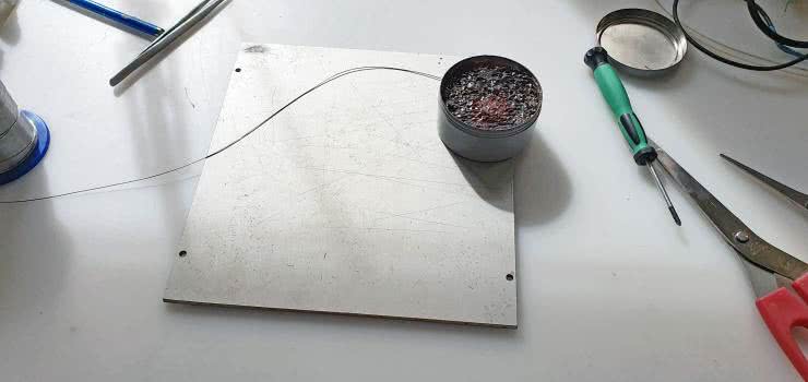 I tutaj pora na kolejny patent. Staram się wykonywać prace lutownicze na metalowej płycie: u mnie to kawałek obudowy jednego ze starych urządzeń – fotografia 3. Wprawdzie jest ona aluminiowa, a aluminium ulega pasywacji, czyli pokrywa się nieprzewodzącym tlenkiem glinu, ale u siebie nie zauważyłem z tego powodu problemów. Na prezentowanej płycie lutuję, a potem łatwo zmywam resztki topnika i inne śmieci przy użyciu papieru nasączonego rozpuszczalnikiem.