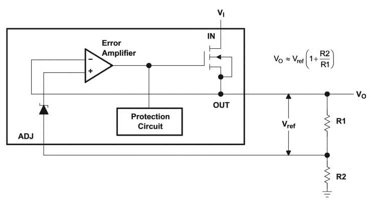 Zarówno ten, jak i poprzednio wspomniany układ, mają wyprowadzoną zewnętrzną pętlę sprzężenia zwrotnego ustalającą napięcie wyjściowe, co pozwala na dodanie kondensatora równolegle do R2. W mojej praktyce stosuję go bardzo często, bowiem znacząco tłumi on tętnienia napięcia wyjściowego. Można w ten sposób bardzo dobrze „odgrodzić się” stabilizatorem liniowym od kiepskiej przetwornicy impulsowej lub innego źródła napięcia o wyjątkowo paskudnej naturze (z punktu widzenia generowanych przezeń zakłóceń).