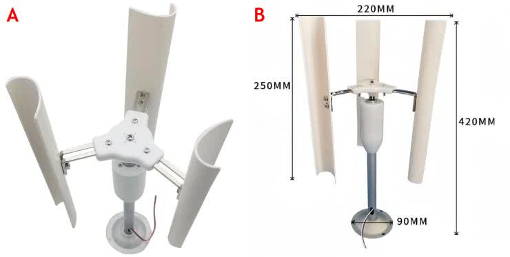 Na fotografii 4 widać turbinę hybrydową Savonius-Darrieus, która pracuje już przy niskich prędkościach wiatru, ale osiąga znacznie lepszą wydajność przy wysokich. Elementy Savoniusa często w takich konstrukcjach są odsprzęgane od osi rotora, gdy prędkość obrotowa elementów Darrieusa jest wyższa, niż prędkość elementów Savoniusa. Dzięki temu dysproporcje w prędkości nie spowalniają całej turbiny.