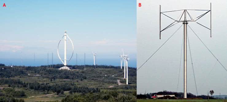 Turbiny Darrieusa mają wyższą sprawność, ale potrzebują wyższej prędkości wiatru. W ich wypadku łopaty mają profil skrzydła samolotu i wiatr nie naciska na turbinę, jak w przypadku turbin Savoniusa, lecz wytwarza siłę nośną, która jest przekształcana na ruch obrotowy turbiny. Konstrukcje tego typu mają kilka różnych form, od klasycznej „trzepaczki do jaj” (fotografia 3a), do rotora z prostymi skrzydłami (fotografia 3b). Istnieją też formy pośrednie, w których łopaty są skręcone helikalnie, czasami tworząc kształt z fotografii 3a, a czasem pozostają umocowane jak na fotografii 3b. Turbiny Darrieusa z reguły nie startują samodzielnie, dlatego często łączy się je z niewielką turbiną Savoniusa.