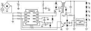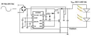 Najczęściej stosowaną metodą zasilania diod LED jest zastosowanie przetwornicy w topologii flyback pracującej w trybie przerywanym (rysunek 3). Wadą tej topologii jest złożoność układu (a co za tym idzie - wyższy koszt), niemożliwość pracy w szerokim, uniwersalnym zakresie napięcia wejściowego AC, podwyższony poziom zaburzeń promieniowanych i przewodzonych (powodowanych przez strumień magnetyczny i napięcie powrotu).
