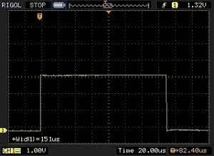 Dodatkowo, 16 kB będzie użyte w wypadku, gdy wykorzystamy standardowe wyjątki z hierarchii wyjątków biblioteki STD, co jest związane głównie z dołączeniem do kodu klasy std::string odpowiedzialnej za łańcuchy tekstowe. Jednak dla "większych" mikrokontrolerów jest to koszt całkowicie do zaakceptowania. Spójrzmy teraz na czas upływający od momentu zgłoszenia wyjątku do jego przechwycenia w klauzuli catch(...). Na rysunku 1 oraz rysunku 2 przedstawiono oscylogramy na linii PE0 reprezentujące czas przechwycenia wyjątku typu int oraz wyjątku klasy std::logic_error().