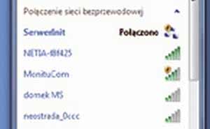 Definicja MY_DEFAULT_SSID_NAME zawiera identyfikator SSID. Dla konfiguracji Ad Hoc jest to nazwa serwera wyświetlana w oknie nazw SSID komputera z charakterystycznym symbolem w postaci 3 komputerów połączonych między sobą (rysunek 7). Na jej podstawie można zidentyfikować serwer i się z nim połączyć. W przypadku sieci a punktem dostępowym ta nazwa musi być taka sam jak SSID routera. Ta nazwa również jest wyświetla się w oknie nazw, ale z symbolem poziomu sygnału.
