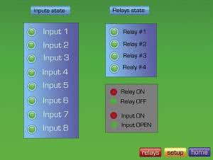 W porównaniu do poprzedniego opisu serwera z interfejsem Ethernet zmieniłem wygląd strony ze stanami wejść cyfrowych. Oprócz stanu wejść są na niej umieszczone sygnalizacje załączenia lub wyłączenia torów przekaźników (rysunek 13).
