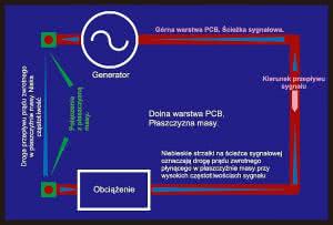 Złe zaprojektowanie ścieżki dla prądu zwrotnego może doprowadzić do utworzenia dużej pętli prądowej, mającej tendencje do zbierania szumu elektromagnetycznego oraz do jego generacji. Należy też zwrócić uwagę na fakt, że ścieżki dla wolnych przebiegów analogowych i szybkich cyfrowych będą wyglądały inaczej. Wniosek z tego jest prosty: skoro są inne, to nie będą się zakłócać.