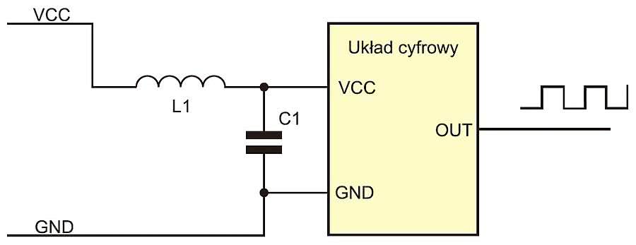 Przy projektowaniu zasilania systemu, w którym są wykorzystywane układy cyfrowe jest często popełniany dość poważny błąd. Pobór prądu podany w nocie katalogowej tego rodzaju przyrządów jest w istocie wartością skuteczną. Układy cyfrowe pobierają prąd podczas pojawienia się zbocza sygnału zegarowego, w postaci wąskich i wysokich (czasami o wartości setek mA) pików.