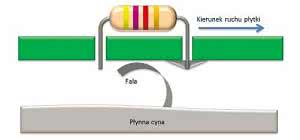 Lutowanie na szczęście odbywa się szybko za pomocą tzw. fali. Idea tego procesu jest bardzo prosta - płytki przemieszczają się nad strumieniem płynnej, falującej cyny, która zwilża je od dołu i lutuje wszystkie elementy w tym samym czasie (rysunek 1). Pozostaje tylko obciąć końcówki elementów oraz skontrolować czy wszystko przylutowało się prawidłowo.