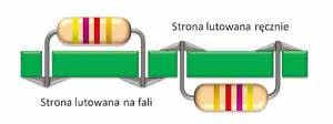 - THT na obu stronach (rysunek 5). Jeżeli większość elementów jest na jednej stronie, a na drugiej tylko kilka, wówczas drugą stronę można przylutować ręcznie lub na fali selektywnej. Jeżeli na obu stronach ma być sporo komponentów, koniecznie trzeba rozważyć zmianę technologii montażu na SMD.