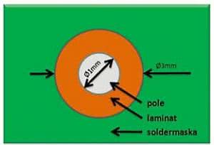 - Umieszczanie przelotek na polach lutowniczych. Podczas wygrzewania w piecu, pasta lutownicza wpływa do wnętrza przelotki, a element pozostaje nieprzylutowany. Oznacza to, że po wyjęciu z pieca, każdy element mający przelotkę w obszarze pola lutowniczego trzeba będzie poprawić i ręcznie uzupełnić cynę. Aby tego uniknąć, wystarczy przelotki umieszczać obok pól.