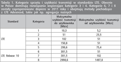 Warto też rozumieć, skąd wynikają różnice pomiędzy szybkościami uzyskiwanymi w poszczególnych kategoriach LTE oraz na czym polega odmienność tej sieci od UMTS. Warstwa radiowa interfejsu sieci LTE nosi miano E-UTRA (Evolved UMTS Terrestrial Radio Access lub Evolved Universal Terrestrial Radio Acces). Natomiast nadajniki/odbiorniki i urządzenia klienckie korzystające z E-UTRA tworzą sieć nazywaną EUTRAN (ostatnia literka pochodzi od słowa Network). W sieci tej komunikacja odbywa się w pasmach o szerokości 1,4 MHz, 3 MHz, 5 MHz, 15 MHz lub 20 MHz. Najwyższa, niemal 300-megabitowa szybkość transmisji może być teoretycznie uzyskana przy zastosowaniu 20-megahercowego pasma i czterotorowej transmisji, która wymaga czterech anten odbiorczych w urządzeniu klienckim. W odróżnieniu od UMTS-u, LTE posługuje się wielodostępem OFDM (Orthogonal Frequency-Division Multiplexing) w kierunku do użytkownika i SC-FDMA (Single-Carrier Frequency-Division Multipple Access) w kierunku przeciwnym. Użycie dwóch różnych sposobów wielodostępu modulacji jest uzasadnione tym, że pierwszy z nich narzuca zbyt duże wymagania odnośnie liniowości zastosowanych wzmacniaczy radiowych, co pociąga za sobą zwiększone zużycie energii. Ponieważ urządzenia klienckie są zazwyczaj przenośne, a więc zasilane bateryjnie, w celu nadawania korzystają z bardziej energooszczędnej metody.