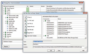 Zarządzanie tymi pakietami odbywa się poprzez wybór odpowiednich opcji we wbudowanym w środowisku μVision5 menadżerze Run-Time Environment (rysunek 2). Użytkownik odznaczając odpowiednie opcje konfiguruje środowisko programistyczne stosownie do wybranego mikrokontrolera i potrzeb swojego projektu. Ta konfiguracja jest zapamiętywana w menadżerze projektów MDK-ARM.