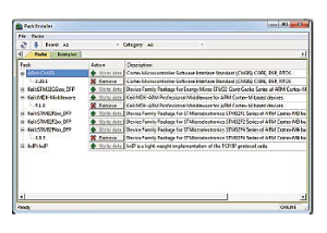 Jest oczywistym, że takie podejście wymusiło użycie otwartego standardu komponentów, tak aby niezależny programista mógł je tworzyć według zasad opisanych między innymi w notach aplikacyjnych AN250, AN251. Każdy pakiet zawiera też plik PDSC z opisem zawierającym informacje o dostawcy, warunkach licencji, wersji. Ułatwia to zarządzanie pakietami i ich aktualizowanie (rysunek 4).
