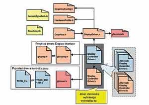 Na rysunku 3 pokazano strukturę plików wykorzystywanych przez warstwę Device Driver Layer. Jeśli używamy sterownika wyświetlacza z listy z tab. 1, to ta warstwa z punktu widzenia programisty nie zawiera niczego interesującego. Przy tworzeniu aplikacji trzeba zainicjować sterownik wyświetlacza i wszystko powinno działać pod warunkiem, że sprawny jest sprzęt: wyświetlacz ze sterownikiem, magistrala sterująca (połączenia) i układ mikrokontrolera. Jeżeli mamy wyświetlacz z innym sterownikiem, to trzeba dokładnie znać działanie i programowanie sterownika wyświetlacza i samemu napisać szereg funkcji stanowiących warstwę Device Driver Layer. Najważniejsze z nich, to: