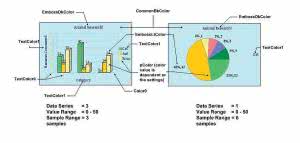 - Chart - element wykorzystywany do graficznego przedstawiania wielkości w formie trójwymiarowych słupków lub okręgu podzielonego na sektory (rysunek 9).