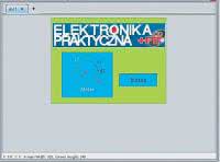 Mamy już wszystko gotowe by rozpocząć testy działania biblioteki. W tym celu tworzymy projekt w środowisku MPALB X i uruchamiamy wtyczkę Graphic Display-Designer. Ponieważ jeszcze nie mamy obsługi panelu dotykowego, to nie można testować działania interakcji z użytkownikiem. Testy będą polegały tylko na wyświetlaniu obiektów (głównie widżetów). W GDD-X utworzyłem projekt ekranu (rysunek 4) z umieszczonymi w nim bitmapą z logo Elektroniki Praktycznej oraz obiektami Meter i Button. Po skompilowaniu projektu i zaprogramowaniu mikrokontrolera te elementy zostały wyświetlone prawidłowo na ekranie wyświetlacza (rysunek 5).