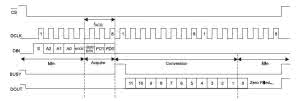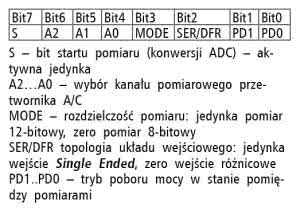 Po zdefiniowaniu linii trzeba je z zainicjować przez zdefiniowanie kierunku (wejście/ wyjście) oraz stanu początkowego linii – listing 13. Do komunikacji z układem potrzebne będą dwie procedury: zapisu 8-bitowej danej (listing 14) i odczytu 12-bitowej danej (listing 15). Do sterownika będziemy zapisywali komendy sterujące jego pracą, a potem odczytywali 12-bitową wartość rezystancji zmierzoną przez przetwornik A/C.