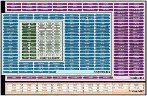 Jeśli zestaw instrukcji i moc obliczeniowa mikrokontrolerów z rdzeniem Cortex-M3 są niewystarczające, to może okazać się pomocny bliźniaczy mikrokontroler z rdzeniem Cortex-M4F, który pozwala na wykonywanie dodatkowych instrukcji, pomocnych w obliczeniach DSP oraz ma jednostkę zmiennoprzecinkową (FPU) umożliwiającą wykonywanie obliczeń na liczbach IEEE754 o pojedynczej precyzji. Pomimo iż oba rdzenie mają wspólny zestaw instrukcji, istnieją różnice wymagające odrębnego traktowania obu rdzeni, zarówno przez kompilator, jak i system RTOS.