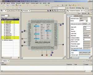 - okno Component Inspector pozwalające skonfigurować peryferia i dedykowany im interfejs programistyczny,