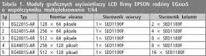 Tabela 1. Moduły graficznych wyświetlaczy LCD firmy EPSON rodziny EGxxxS o współczynniku multipleksowania 1/64